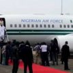 President Buhari arrived the Nigerian Airforce Base (NAF), Kaduna around 10.10am in a presidential aircraft.