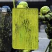 French riot police used teargas and stun grenades and water cannon on Saturday against protesters clad in fluorescent yellow trying to break through security cordons at the Champs Elysees in Paris.